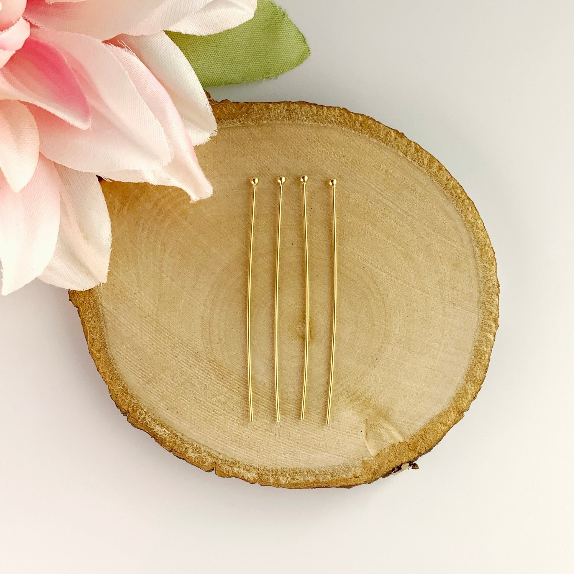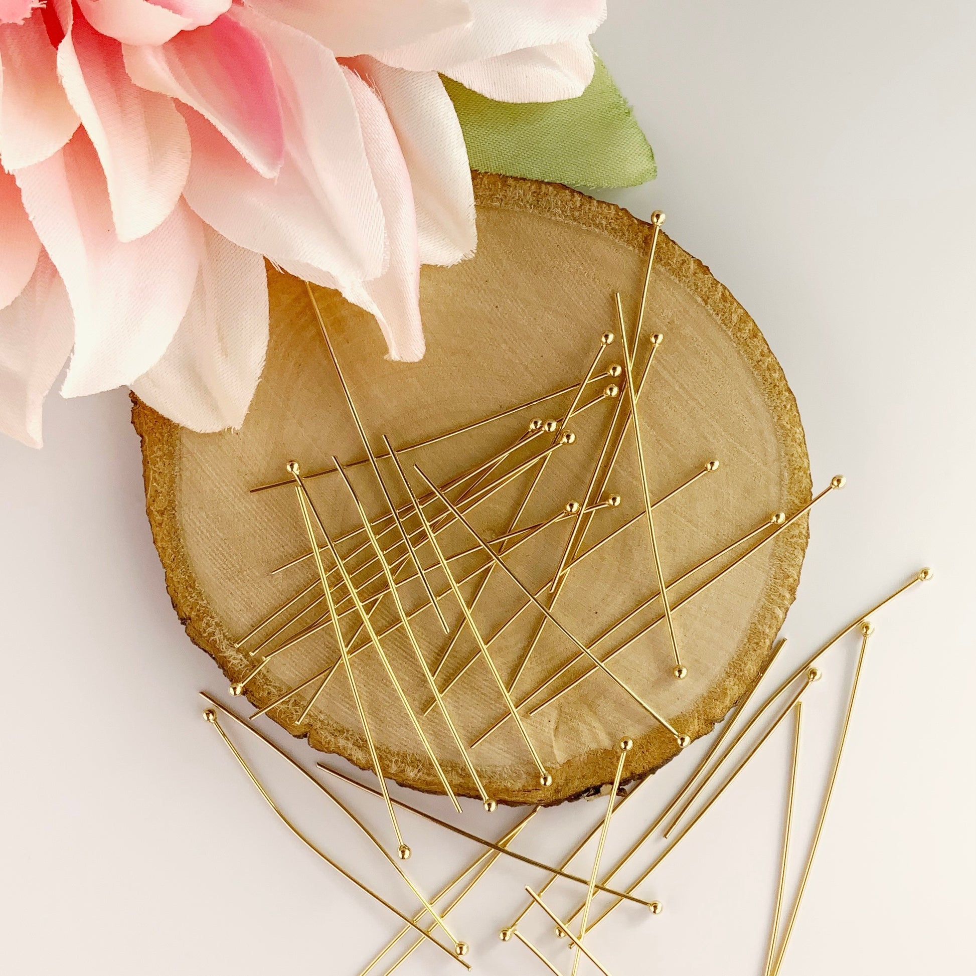 18K Gold Plated Stainless Steel Ball Head Pins – 2” Long, 21 Gauge, Pack of 20