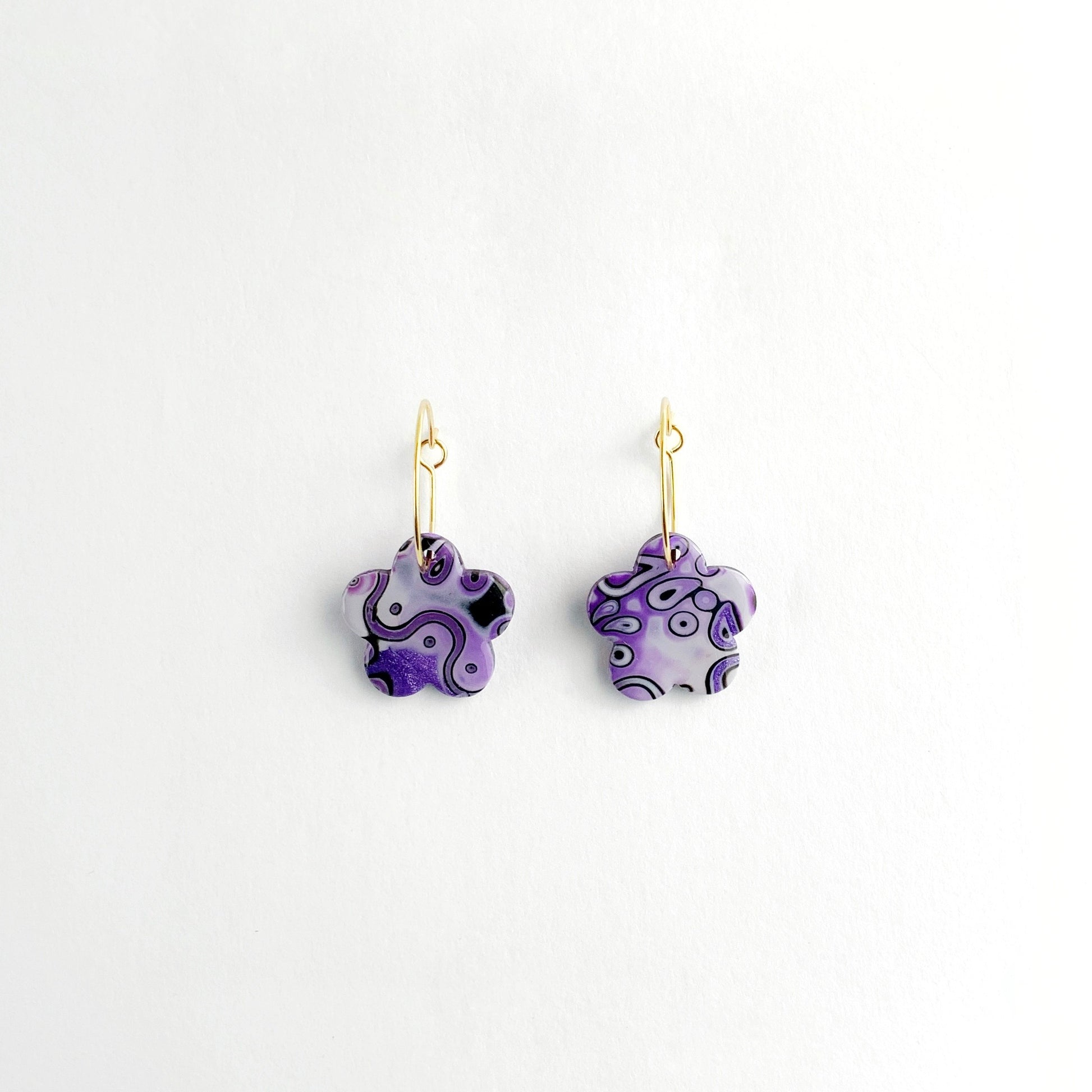 Flower Hoop Earrings in Purple Mokume Gane