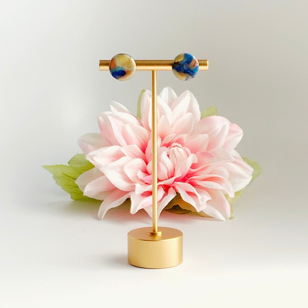 These small circle studs feature a stainless steel post for durability. Each earring is coated with a glossy resin finish, enhancing their sleek appearance while maintaining a lightweight and comfortable fit. Ideal for everyday elegance with expert craftsmanship.