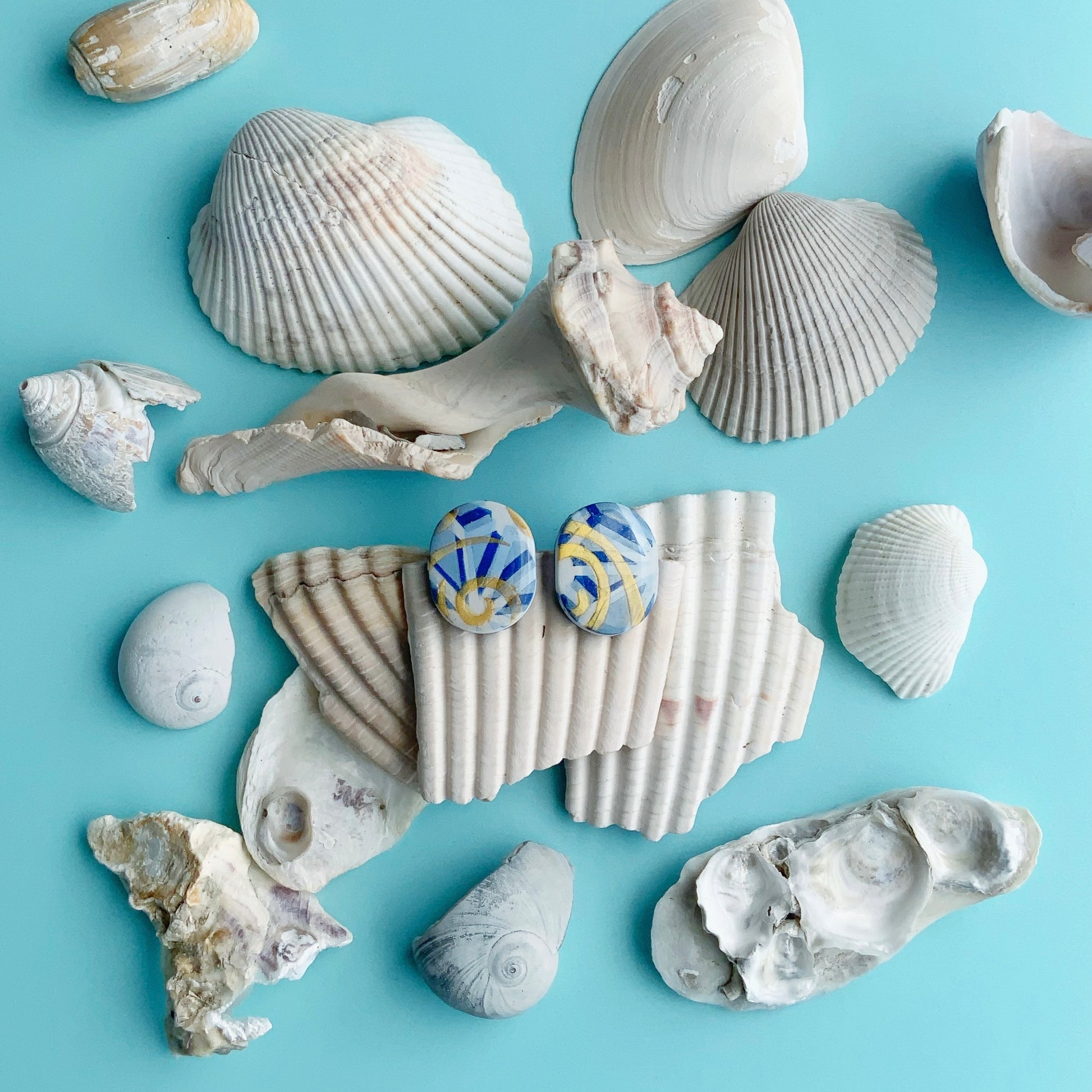 These small blue shade stud earrings feature stainless steel posts for durability. Finished with glossy resin, they offer a polished look while remaining lightweight for all-day wear. Ideal for adding a subtle pop of color to everyday outfits.